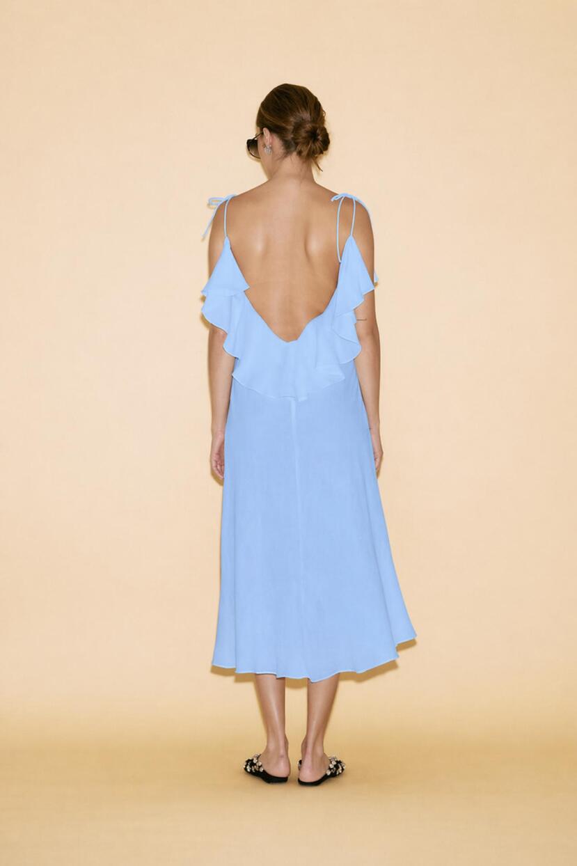 HOME - CLOTHING - Dresses - Midi-Backless Blue Cotton Midi Dress