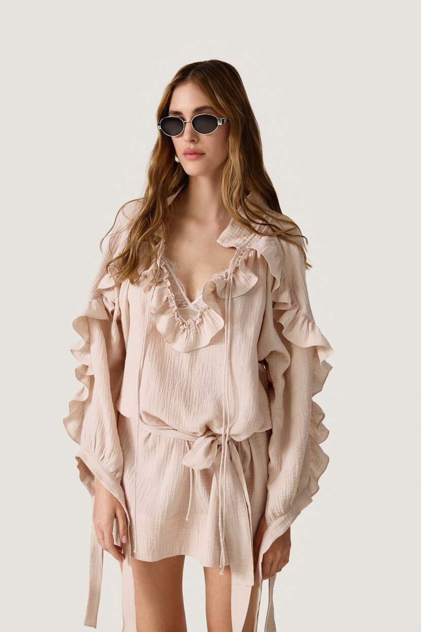 HOME - CLOTHING - Dresses - Mini-Beige Dress With Ruffled Details - SS26