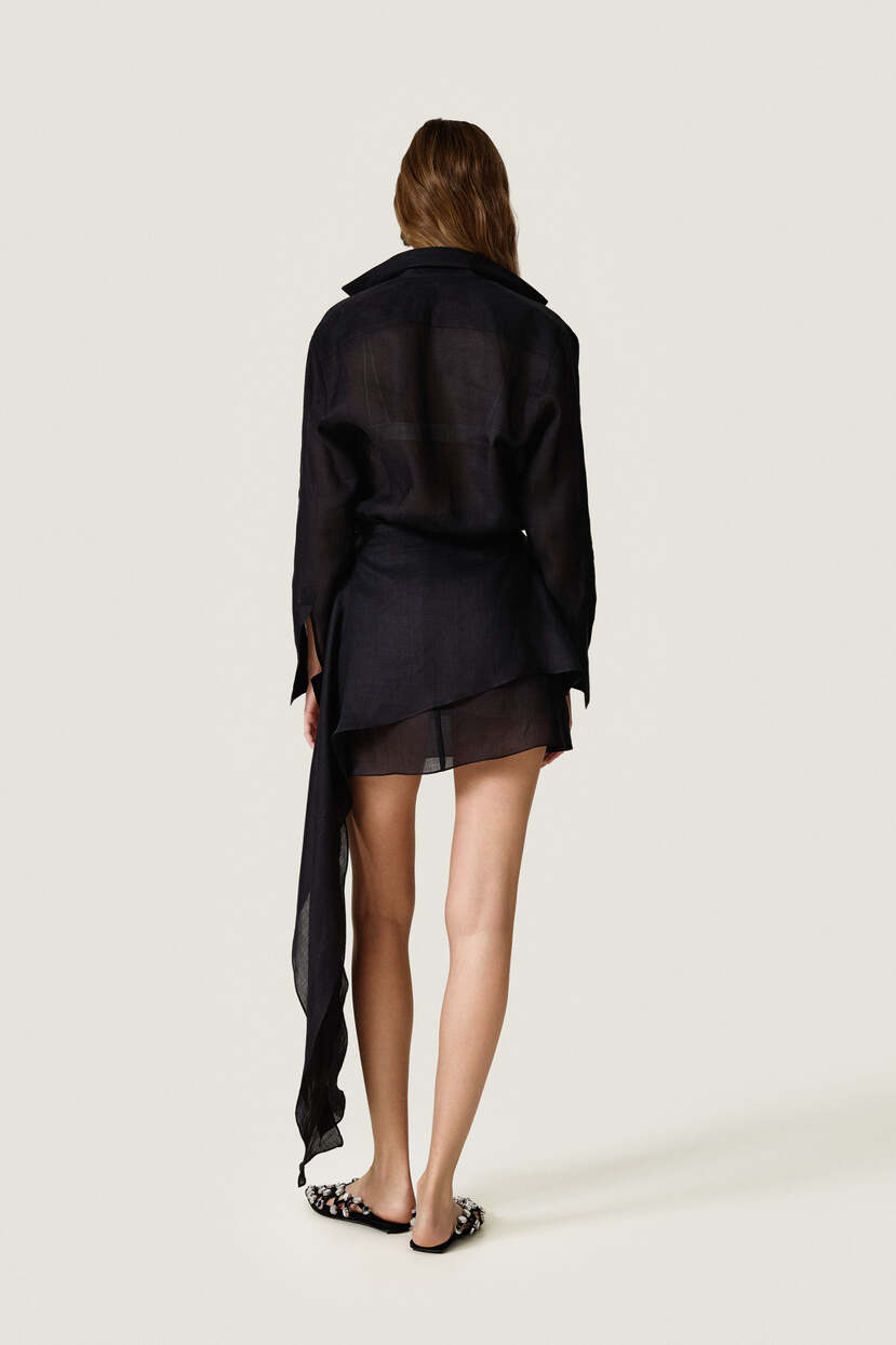 HOME - CLOTHING - Dresses - Mini-Black loose dress with an asymmetric cut and flowing side detail - SS26