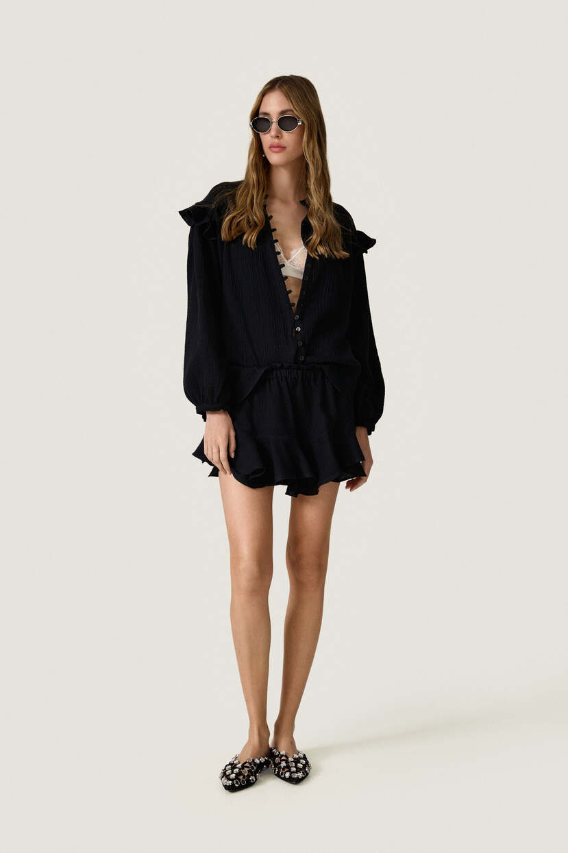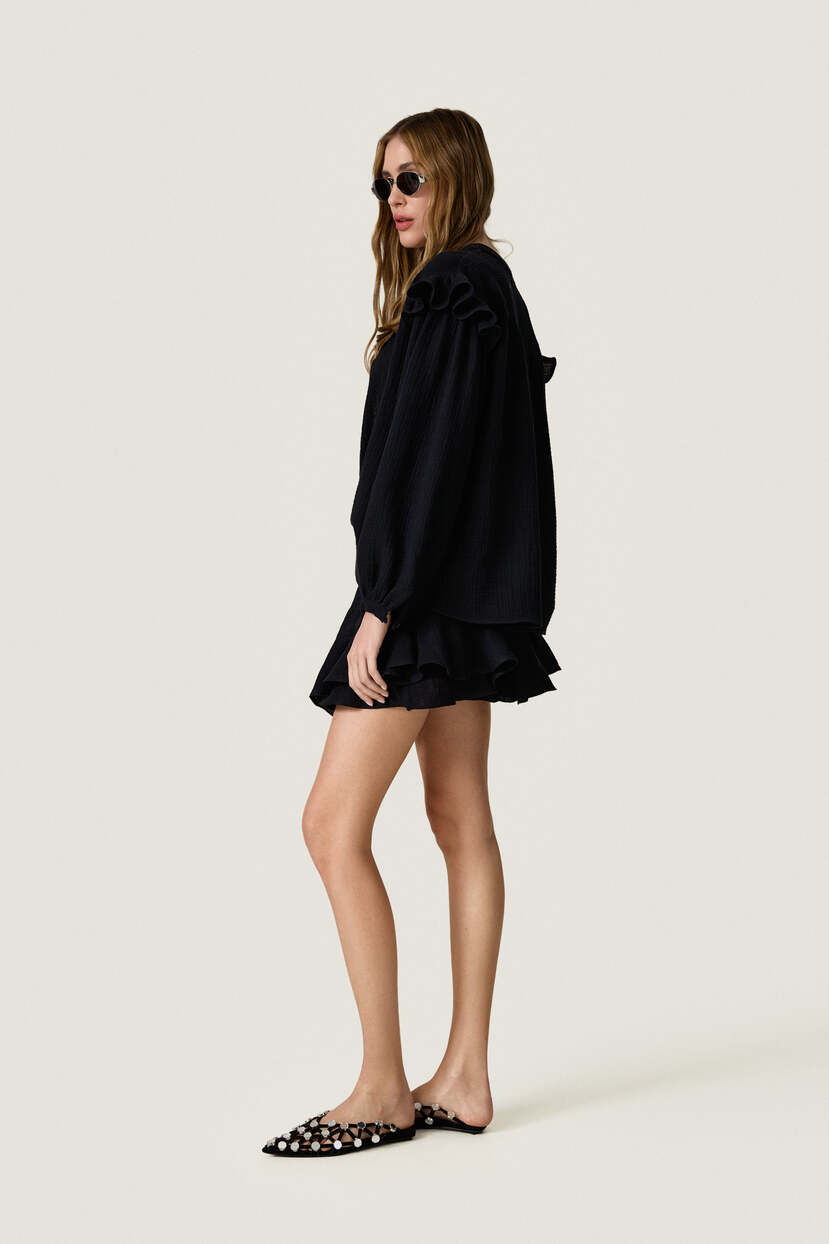 HOME - CLOTHING - Tops - Blouses-Black Oversized Cotton Blouse