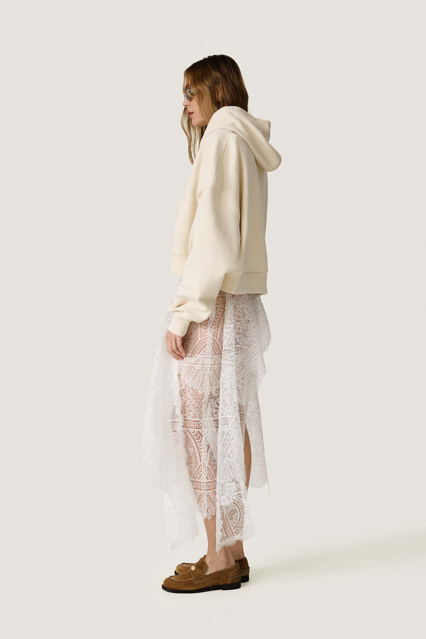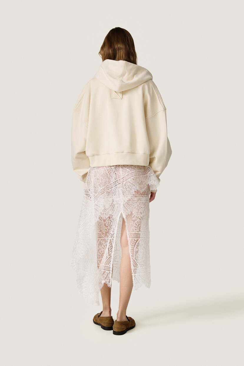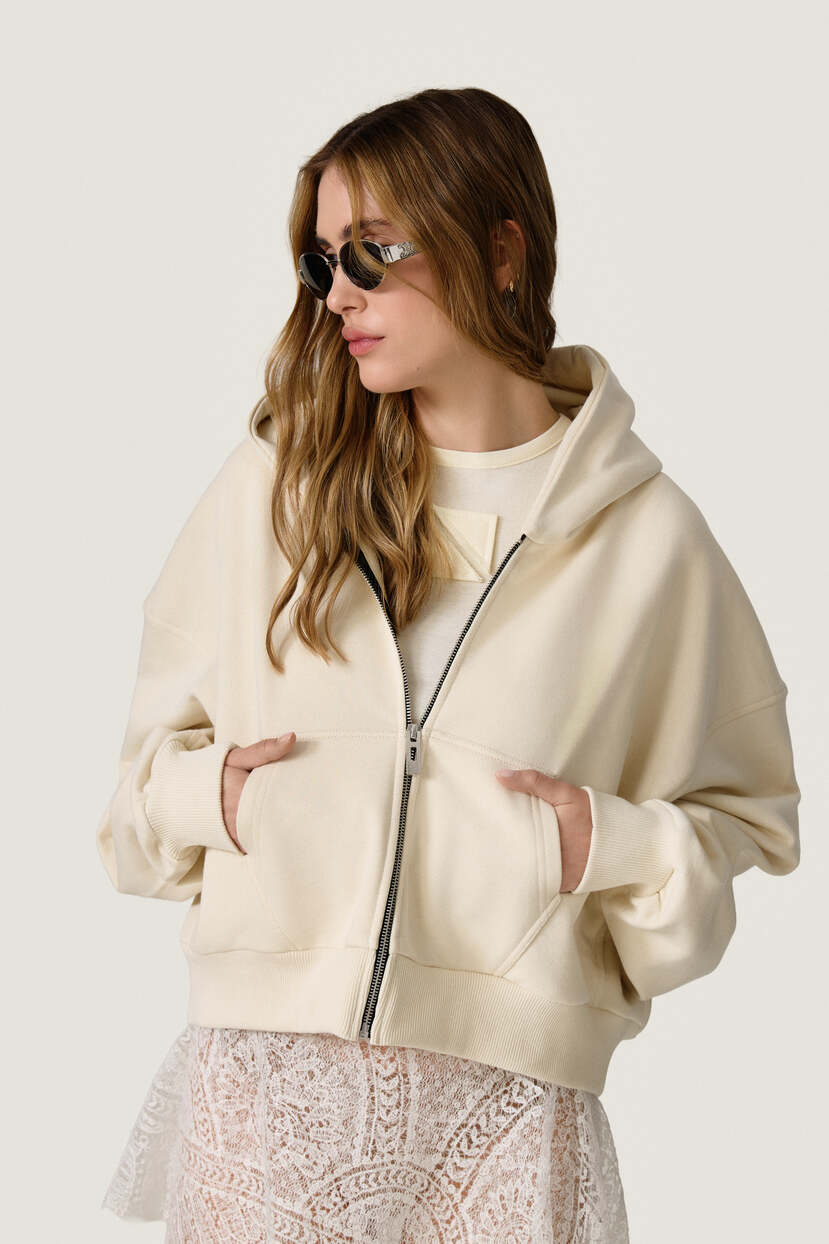 HOME - CLOTHING - Tops - Sweatshirt-Long Sleeve Zipped Light Beige Cotton Hoodie - SS26
