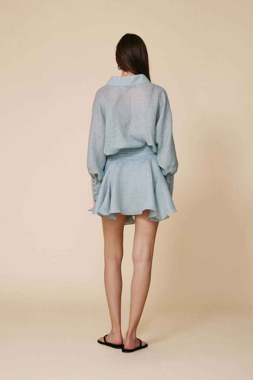 HOME - CLOTHING - Skirts - Mini-Aqua Button-Down Skirt