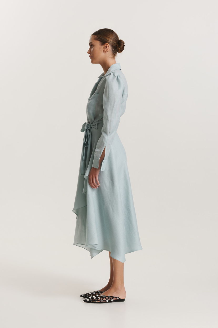 HOME - CLOTHING - Dresses - Midi-Aqua Ruffled Midi Dress