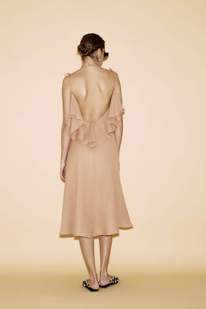 HOME - CLOTHING - Dresses - Midi-Backless Beige Cotton Midi Dress - SS24