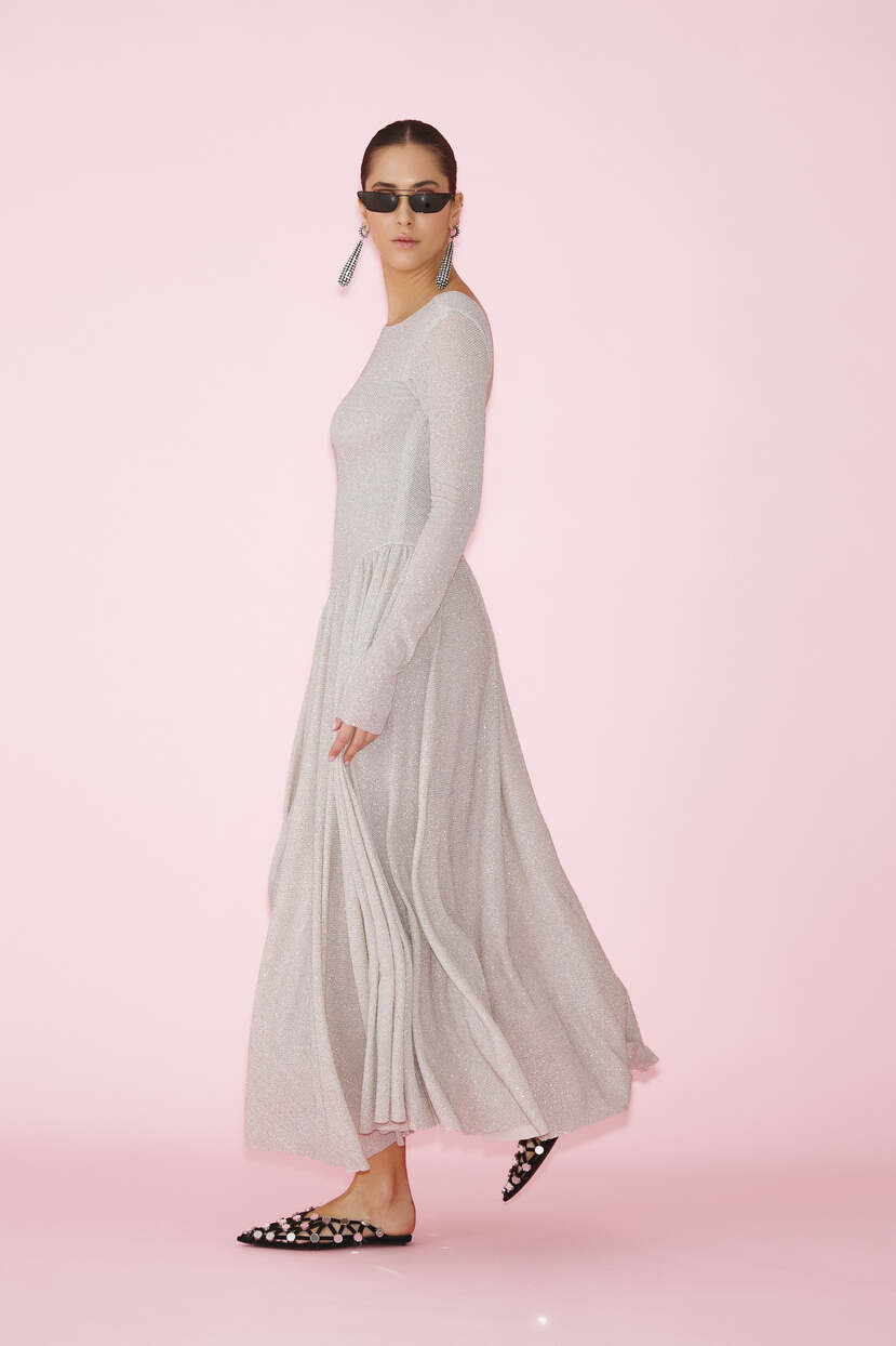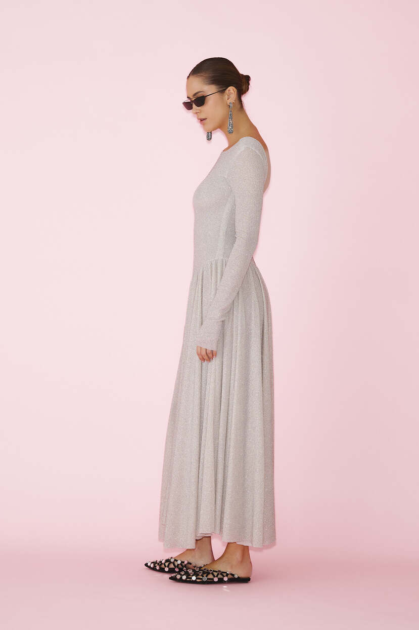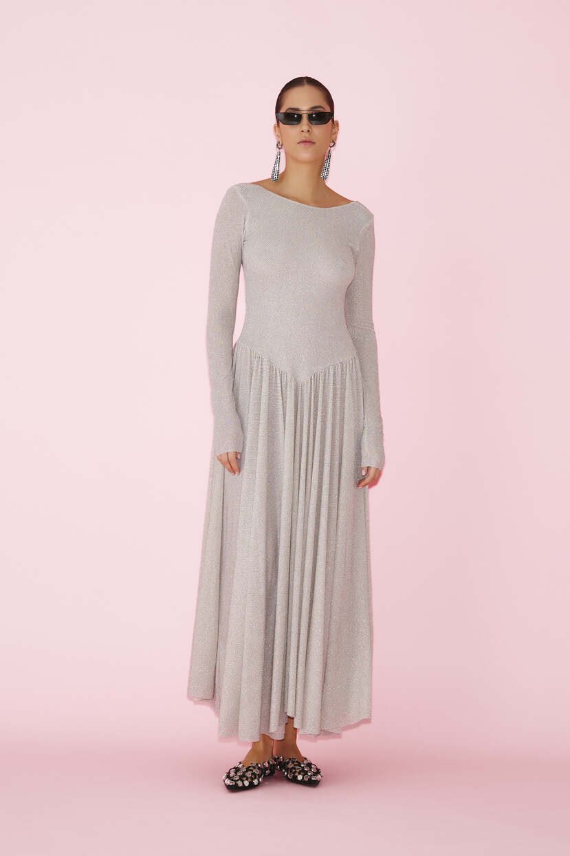 HOME - CLOTHING - Dresses - Midi-Beige Glitter Midi Dress
