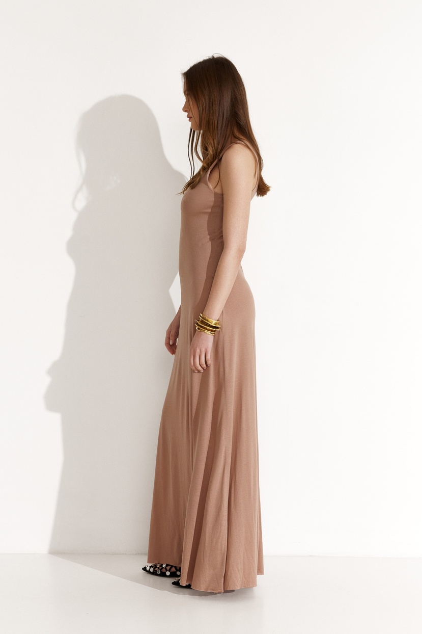 HOME - CLOTHING - Dresses - Maxi-Beige Maxi Dress With Built-Bodysuit