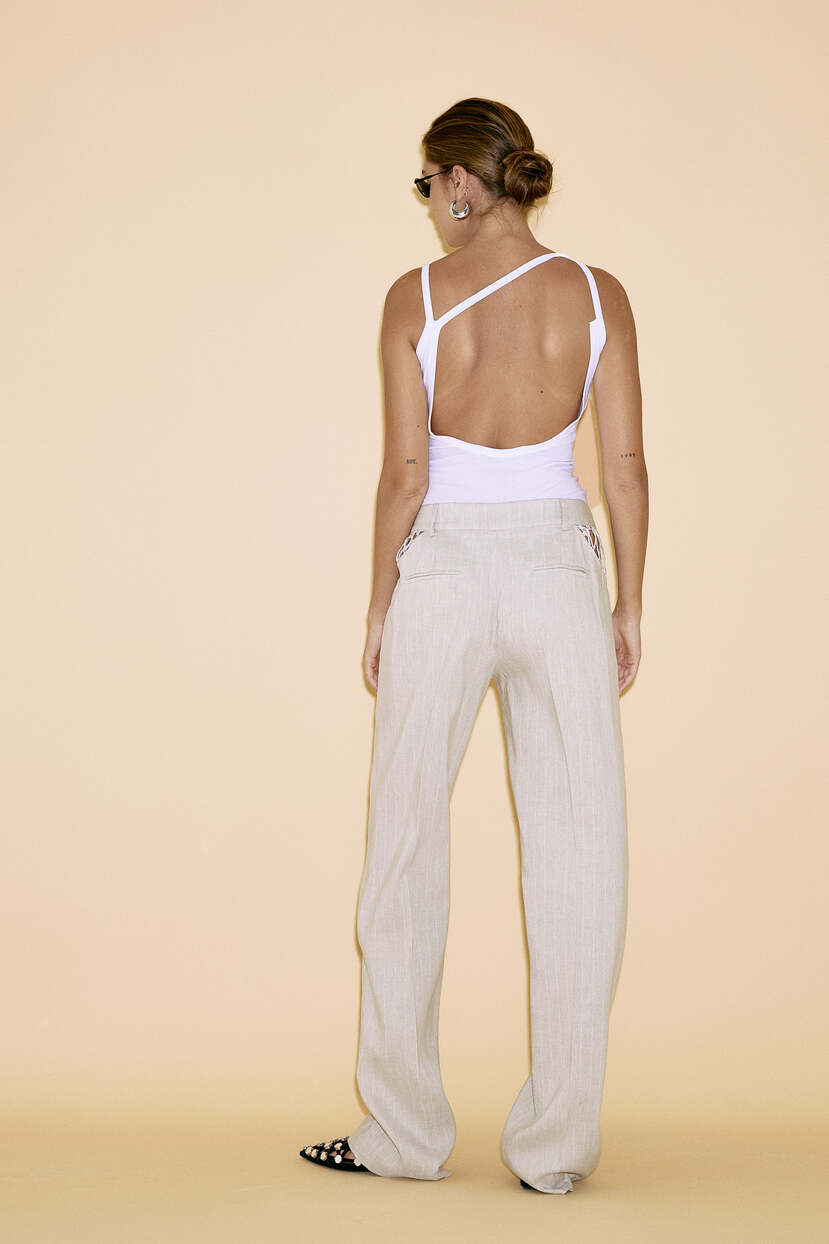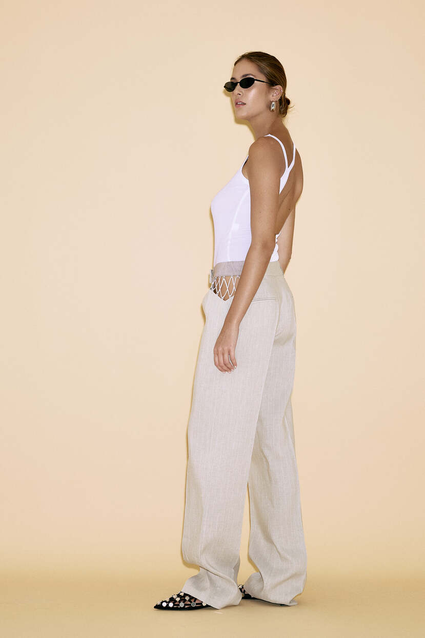 HOME - CLOTHING - Pants - Tailored-Beige Linen Pants With Side Mesh
