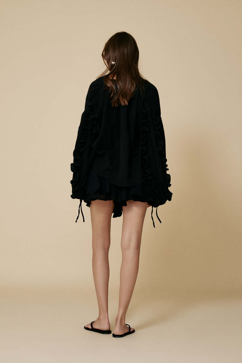 HOME - CLOTHING - Tops - Blouses-Black Cotton Oversized Shirt With Ruffled Detail