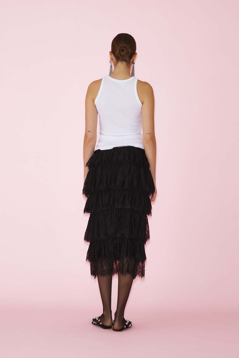 HOME - CLOTHING - Skirts - Midi-Black Lace Midi Skirt With Ruffles