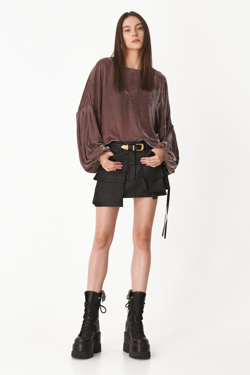 HOME - CLOTHING - Skirts - Mini-Black Leather Mini Skirt - SS24
