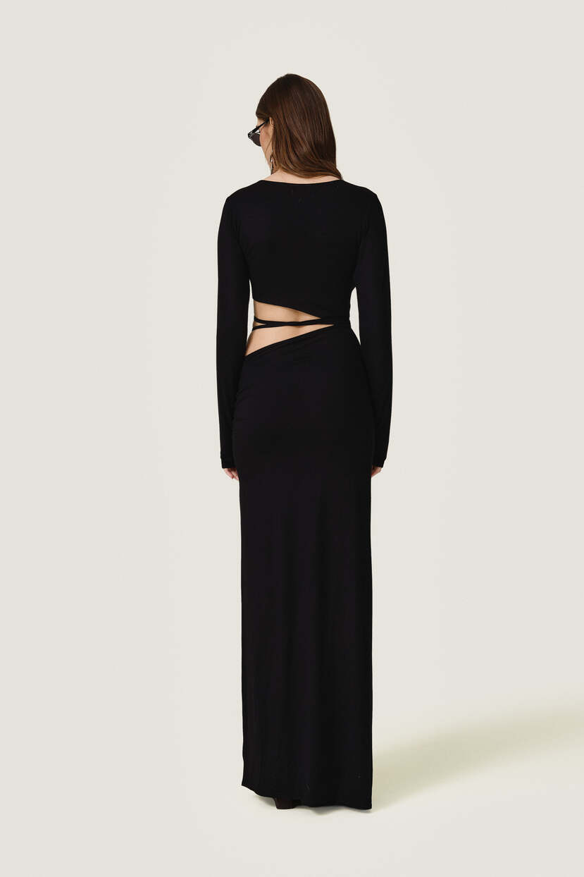 HOME - CLOTHING - Dresses - Maxi-Black Maxi Dress With a Front Cut-Out Detail And Adjustable Lace-Up Tie - SS26