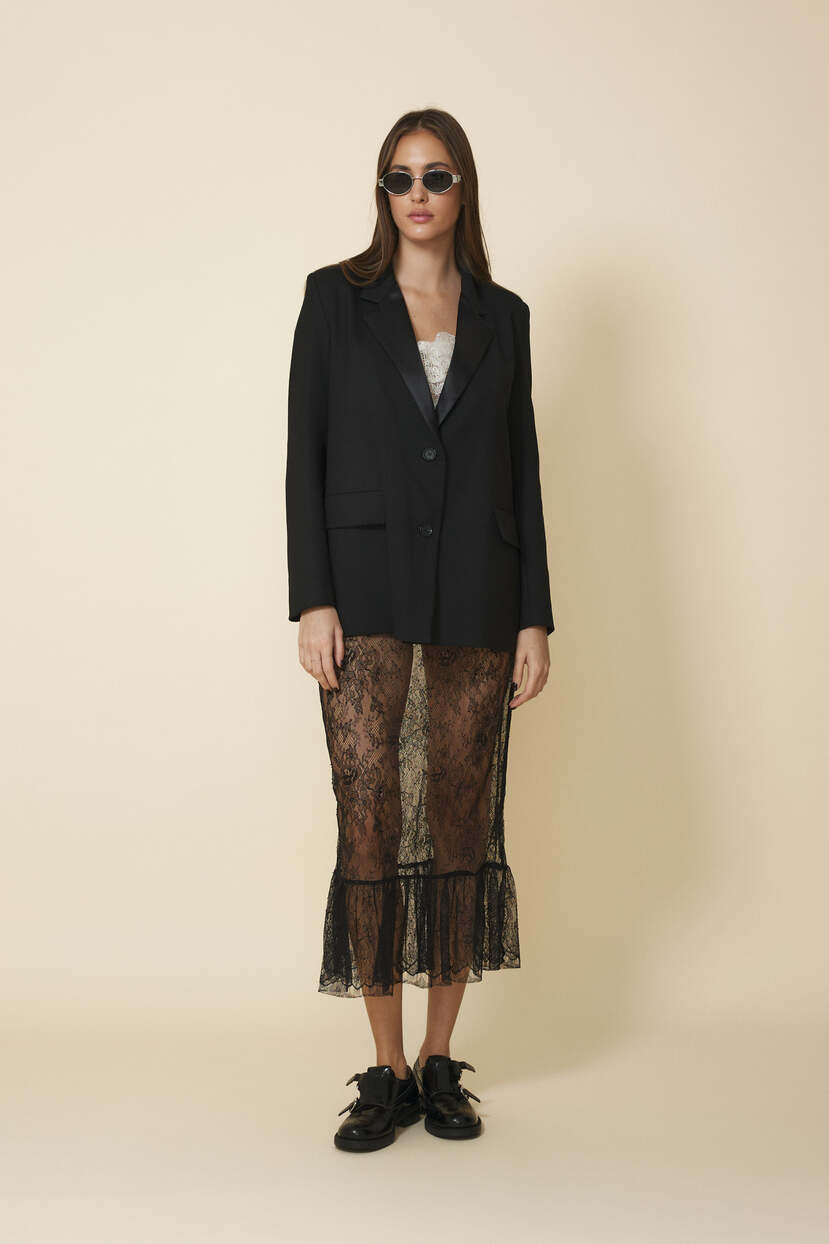 HOME - CLOTHING - Skirts - Midi-Black Midi Lace Skirt - FW25