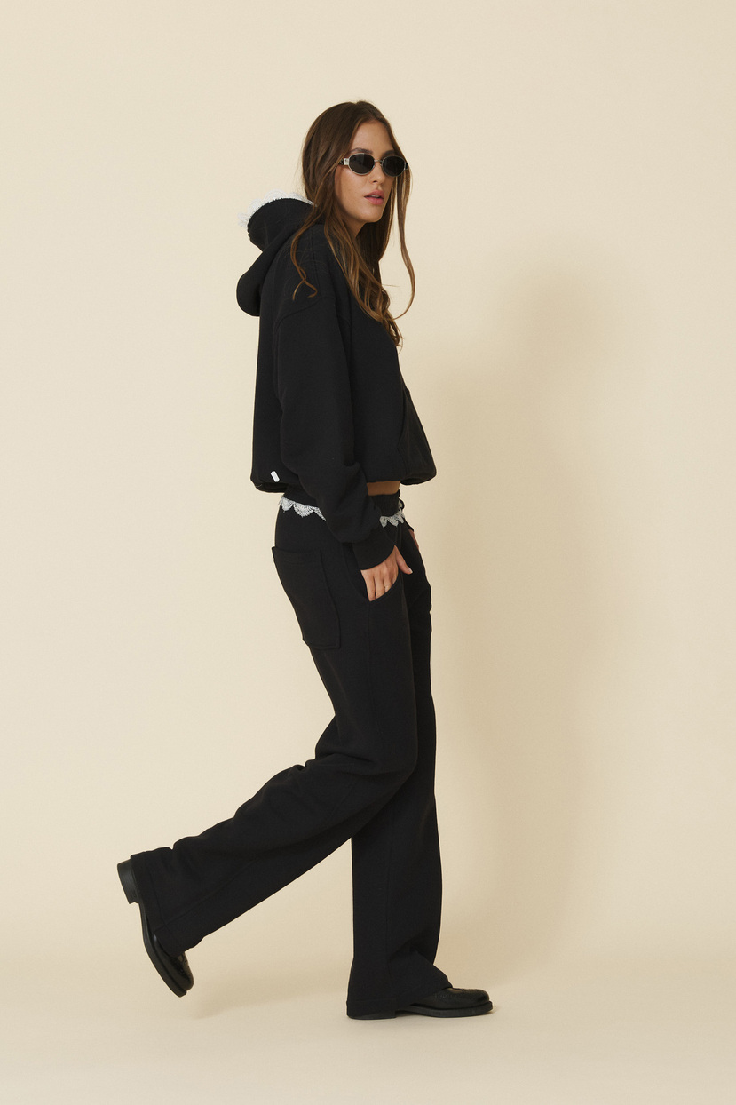 HOME - CLOTHING - Pants - Casual-Black Pants With Lace Inserts