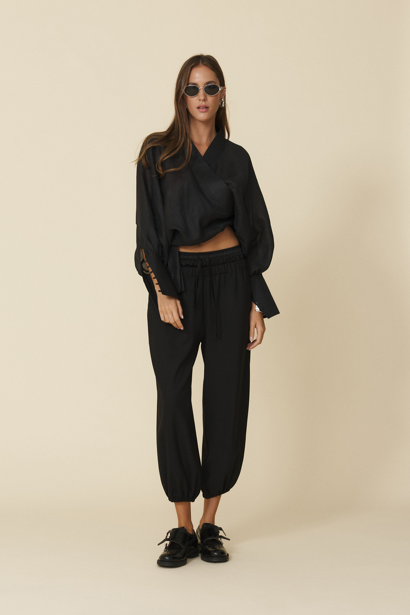 HOME - CLOTHING - Pants - Casual-Black Relaxed-Fit Pants With Silk Insert At The Waistband - FW25