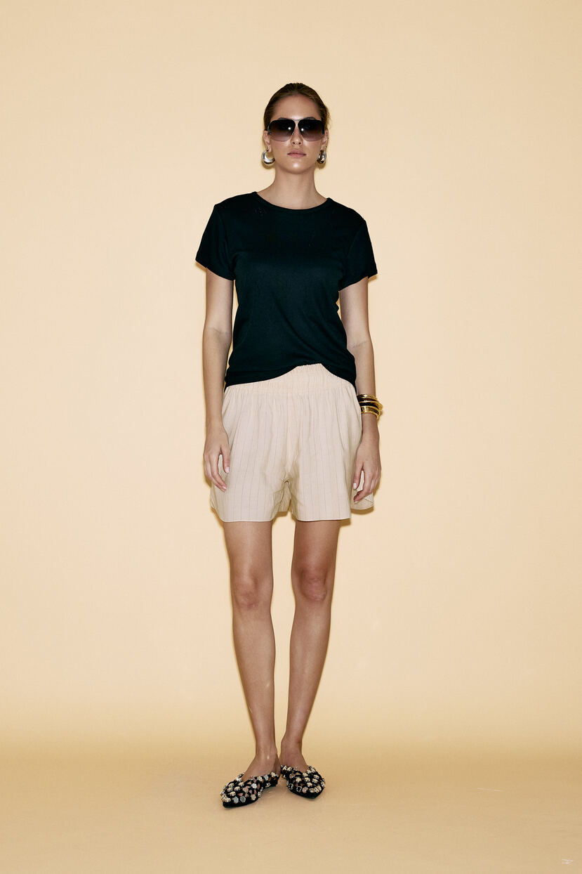 HOME - CLOTHING - Tops - Tshirts-Black Rib Hand-Distressed T-shirt - SS24