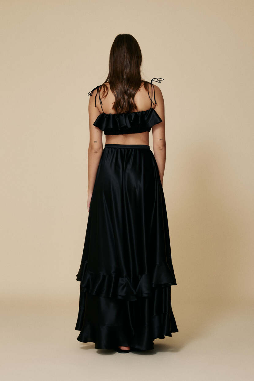 HOME - CLOTHING - Skirts - Maxi-Black Silk Maxi Skirt With Ruffles
