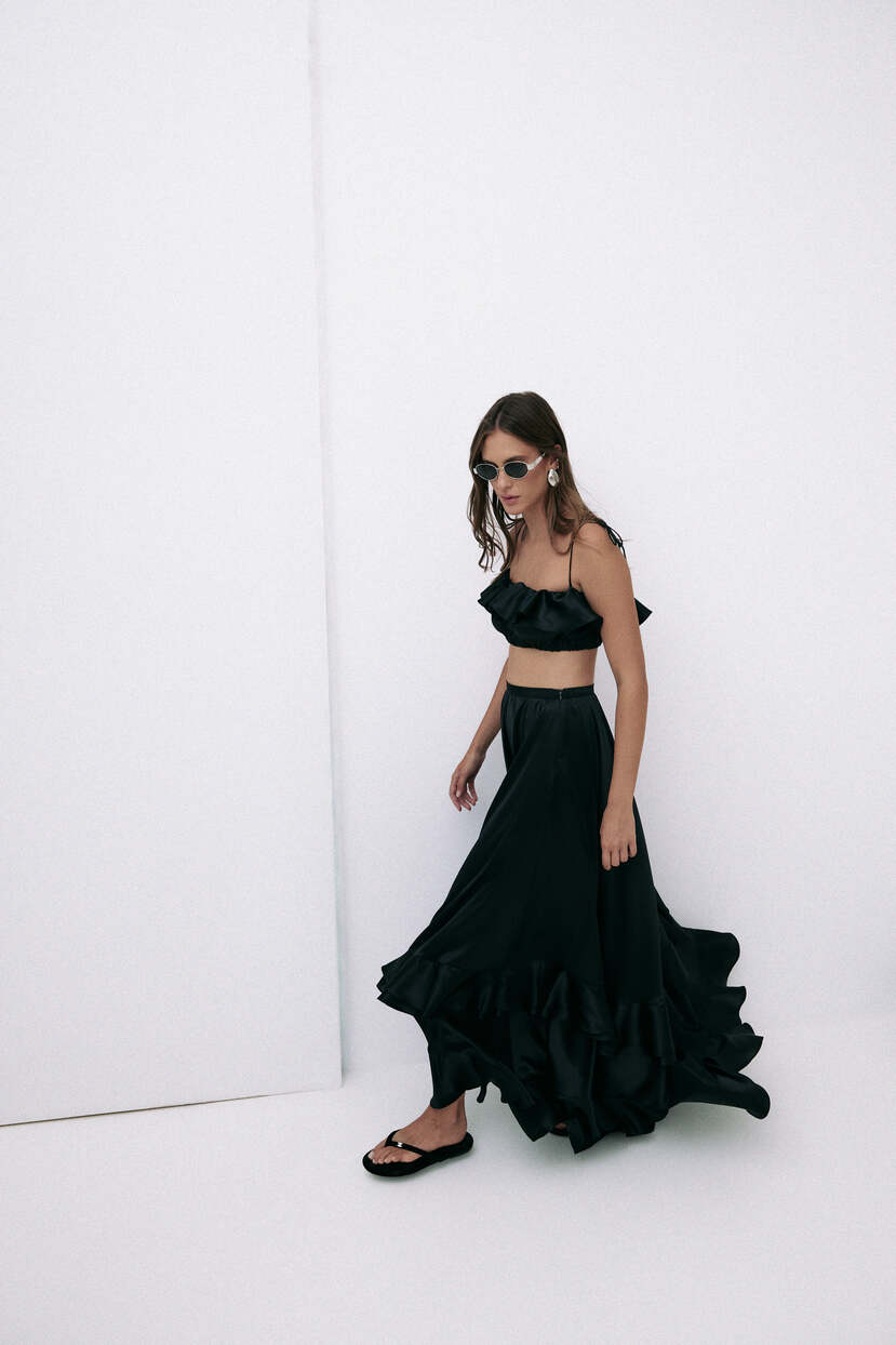 Black Silk Maxi Skirt With Ruffles