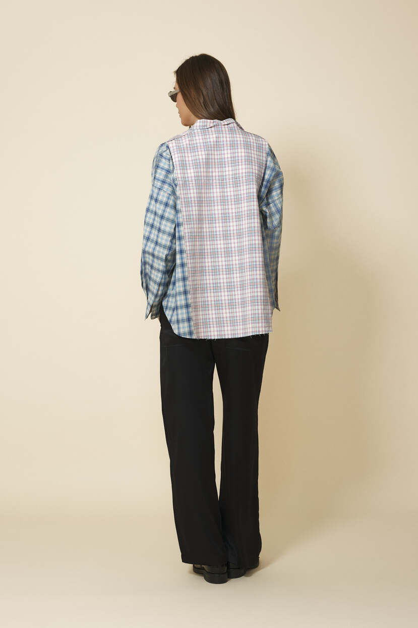 HOME - CLOTHING - Tops - Shirts-Blue Checkered Oversized Shirt