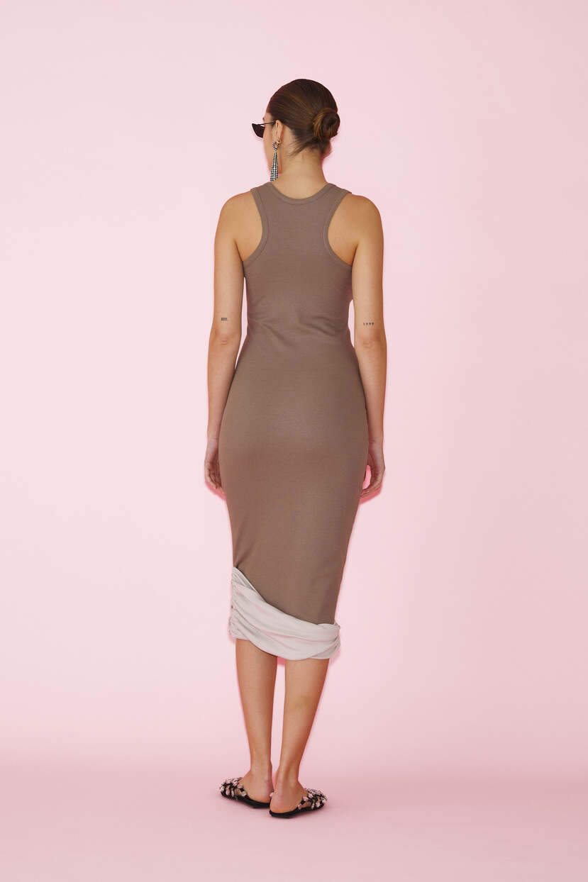 HOME - CLOTHING - Dresses - Midi-Brown Two-Color Dress