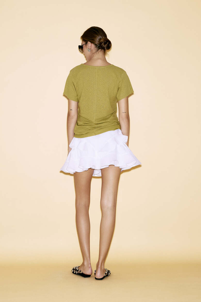 Dark Yellow Blended Cotton-Linen "V" T-shirt