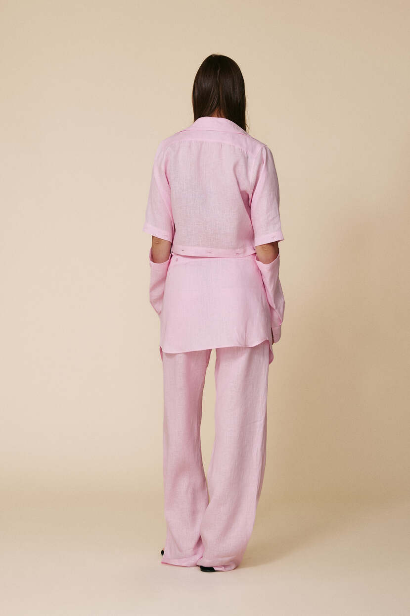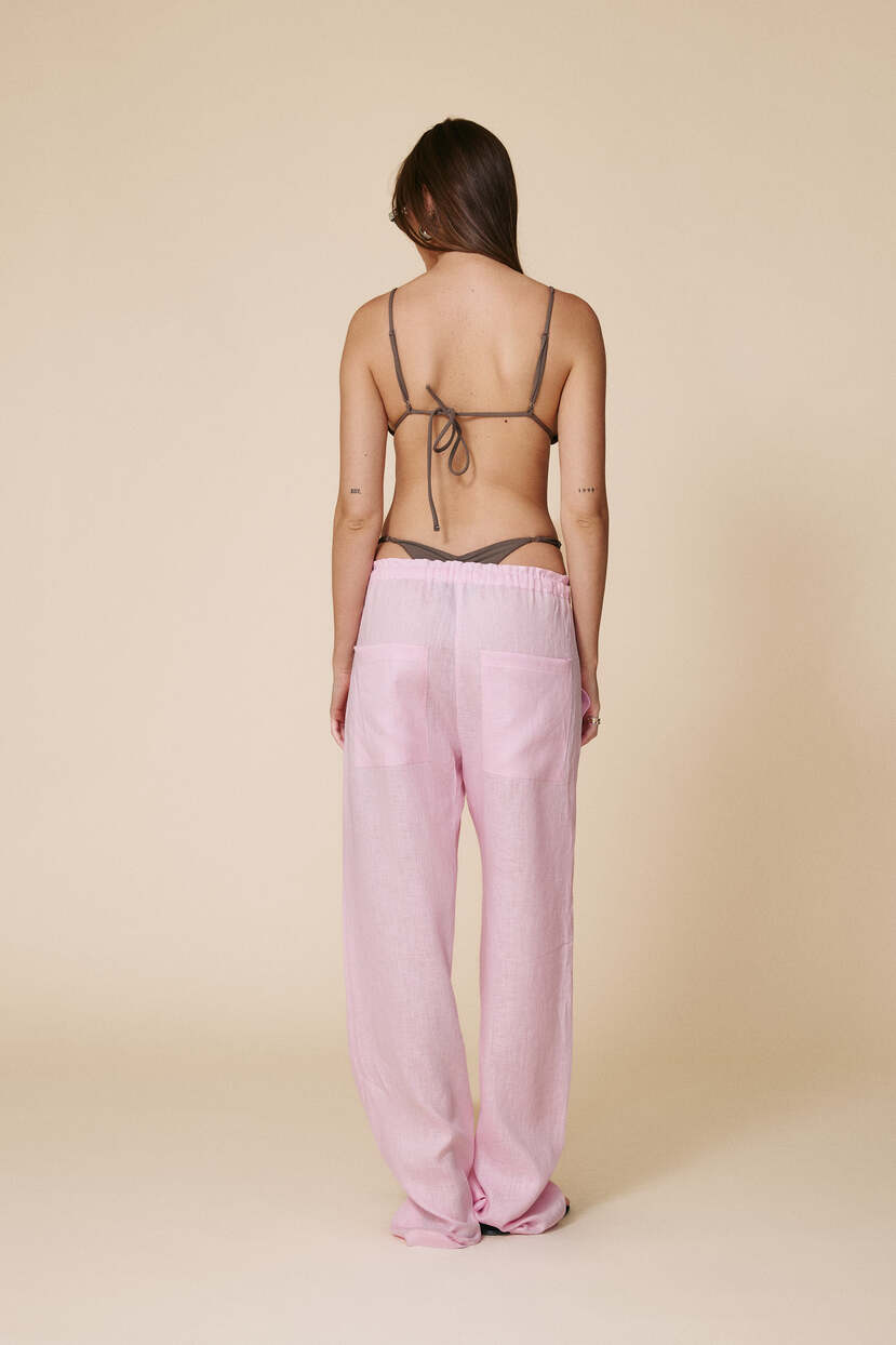Elastic Waist Rose Linen Trousers