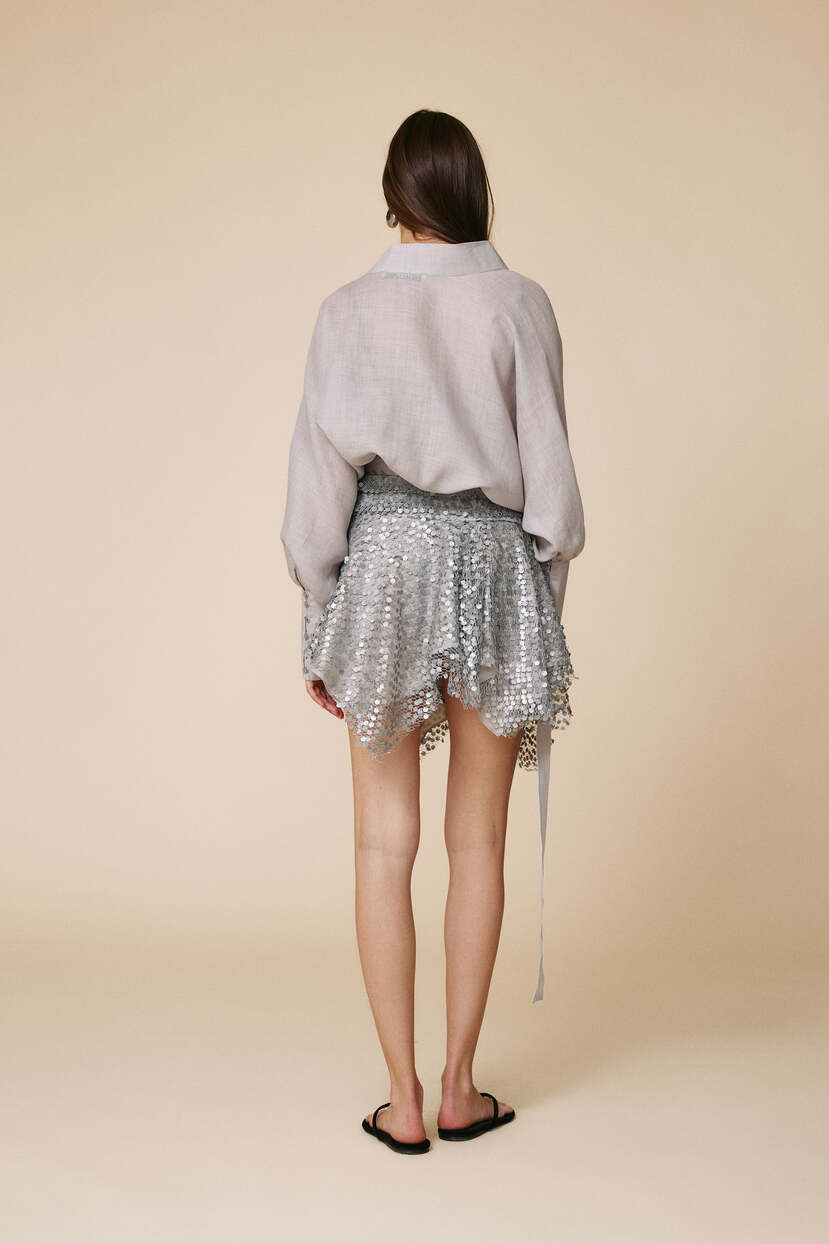 HOME - CLOTHING - Skirts - Mini-Grey Asymmetric Sequin Skirt - FW25