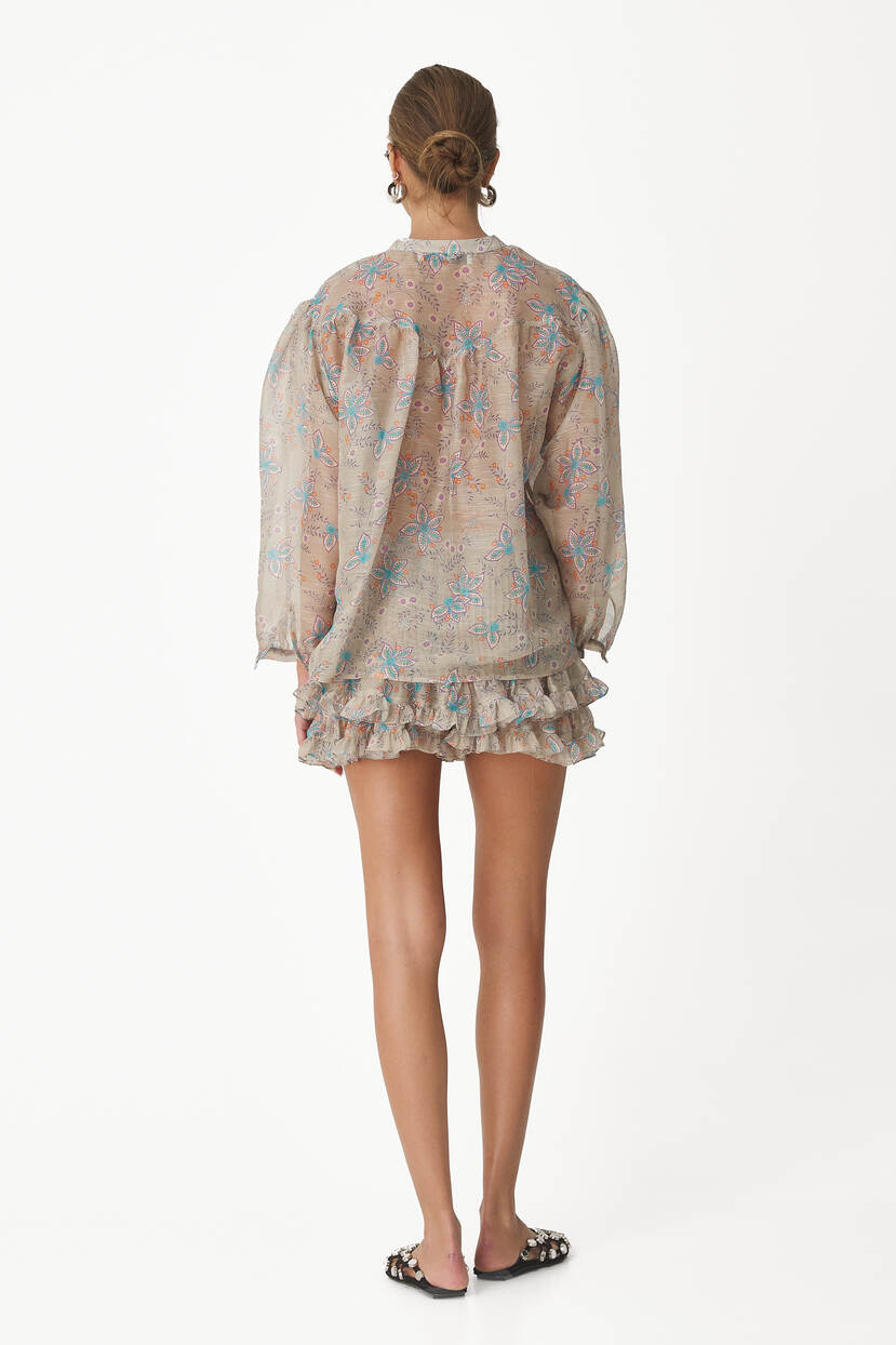 HOME - CLOTHING - Pants - Shorts-Grey-Green Printed Linen-Silk Shorts - SS24