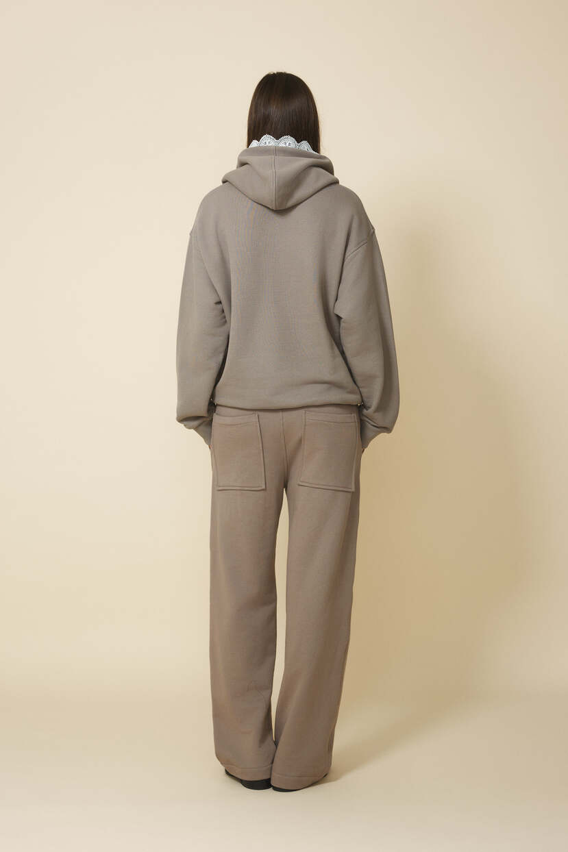 HOME - CLOTHING - Tops - Sweatshirt-Grey Oversized Sweatshirt With Lace Inserts