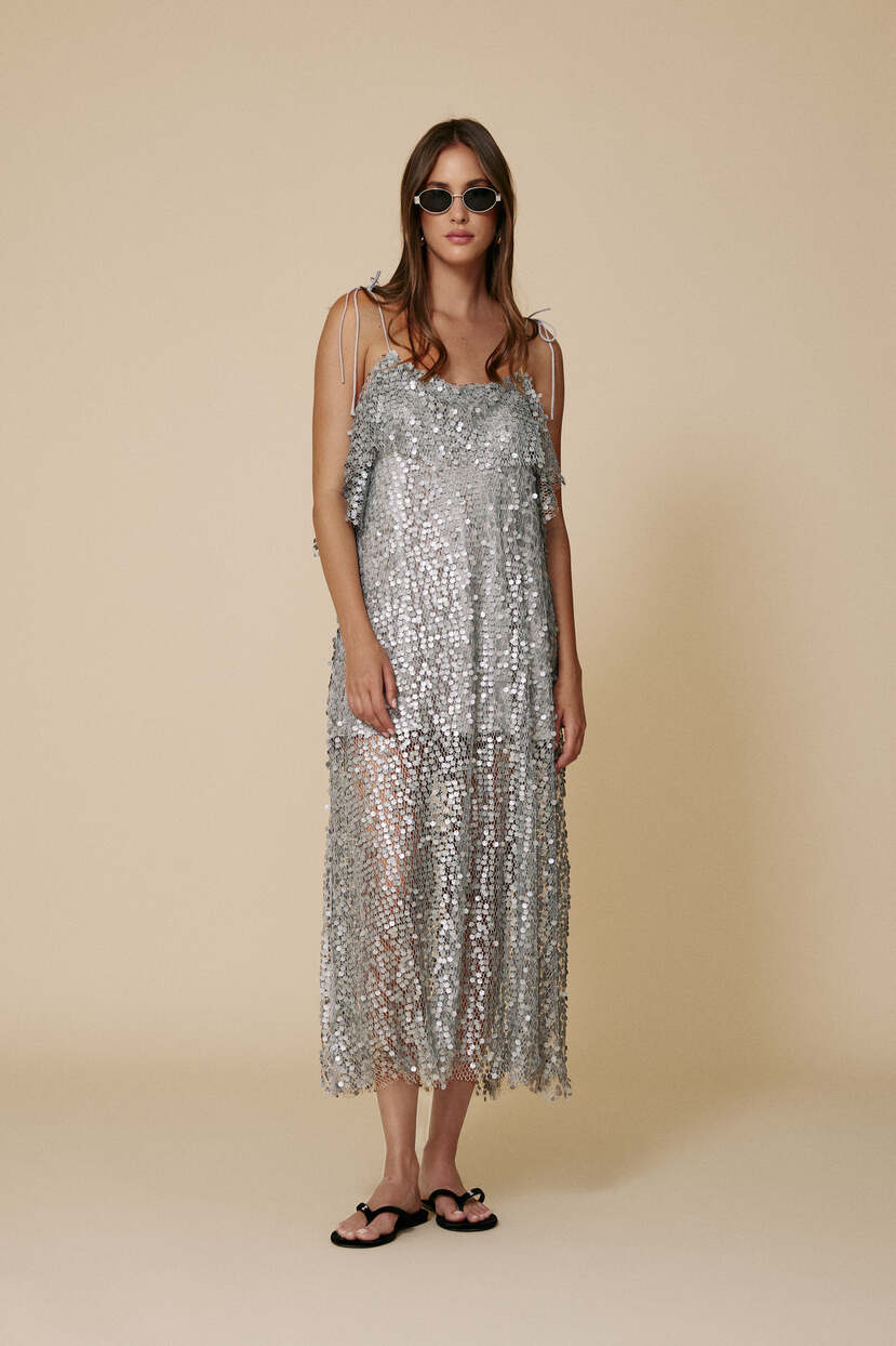 HOME - CLOTHING - Dresses - Midi-Grey Sequin Midi Dress - FW25