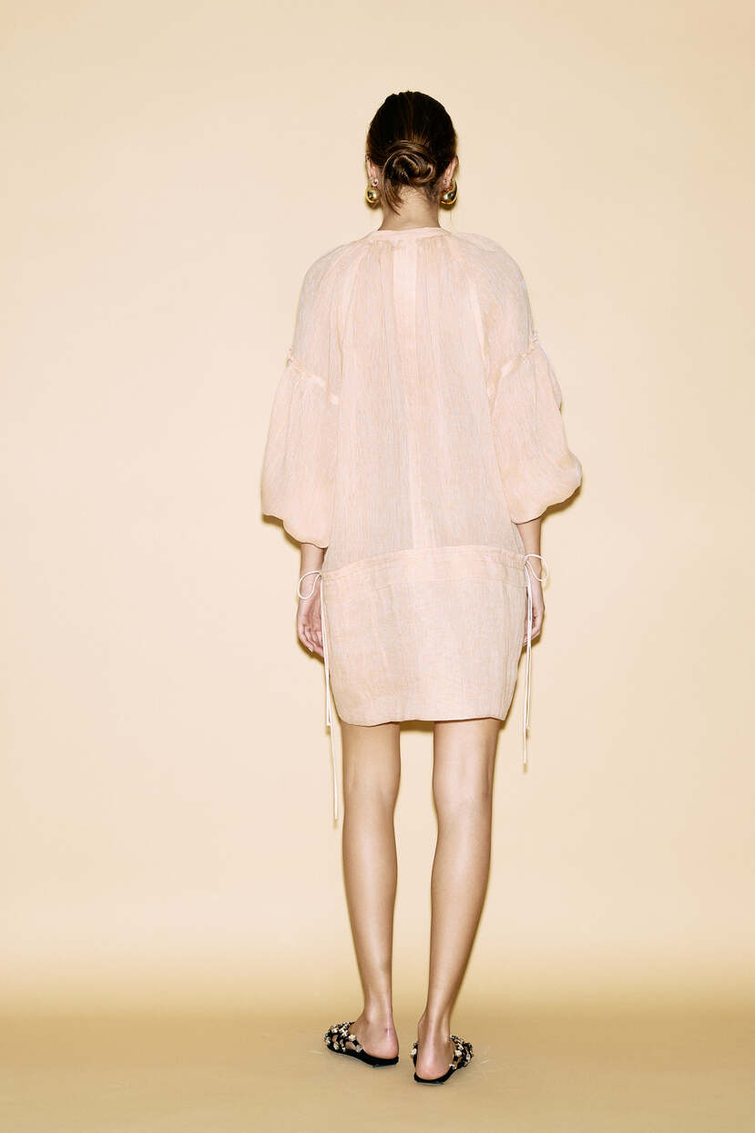 HOME - CLOTHING - Dresses - Mini-Light Orange Linen Bohemian Dress - SS24