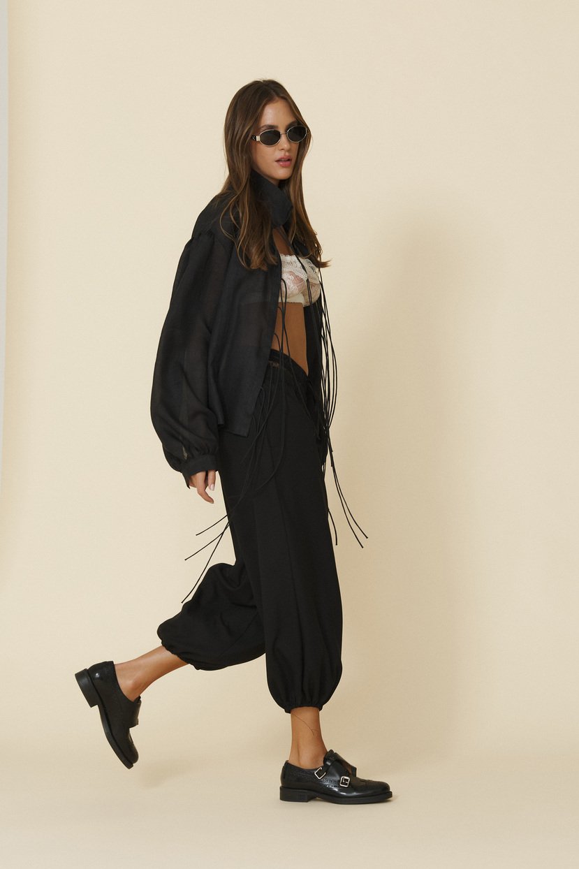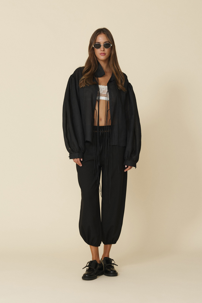 Loose-Fit Black Blouse With Voluminous Balloon Sleeves With Wide Cuffs - FW25