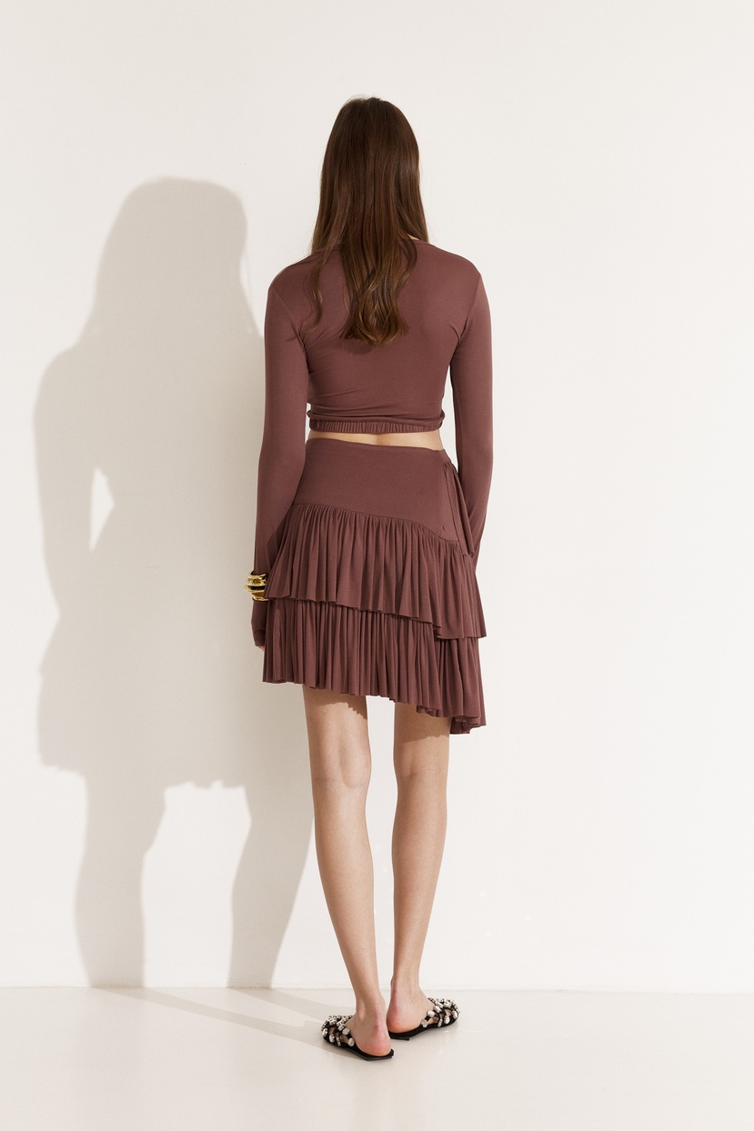 Mauve Pleated Mini Skirt with Asymmetric Hem