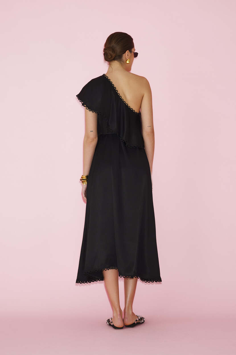 HOME - CLOTHING - Dresses - Midi-One Shoulder Black Viscose Midi Dress