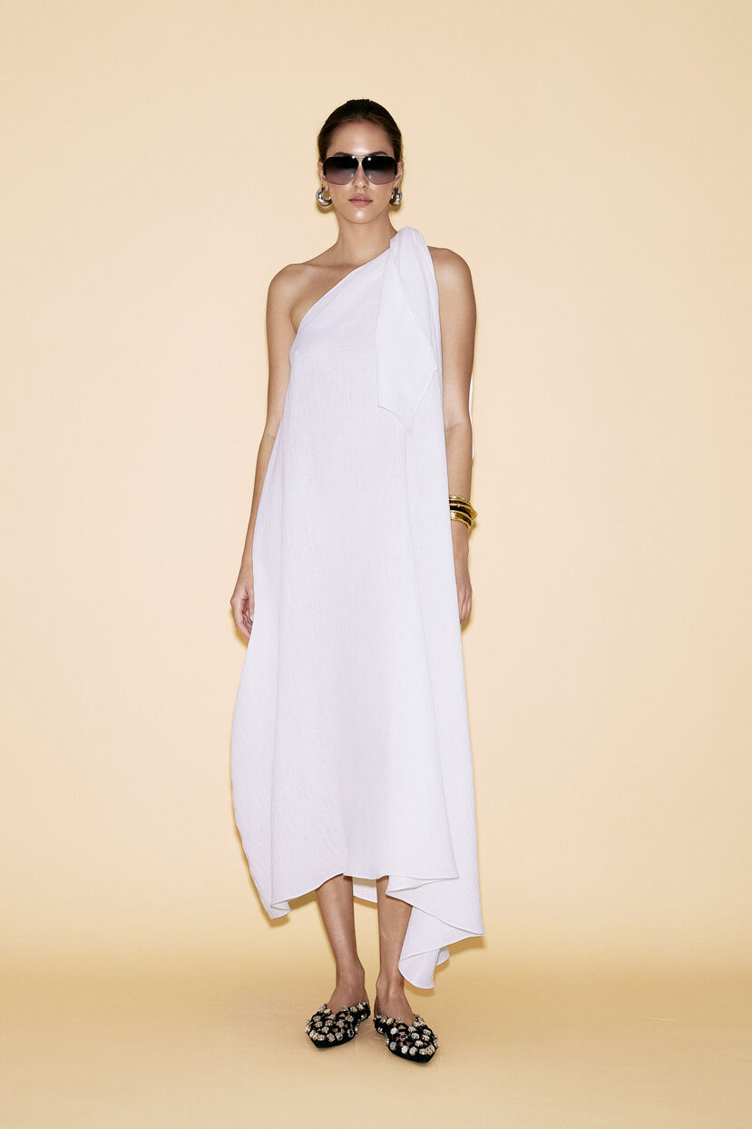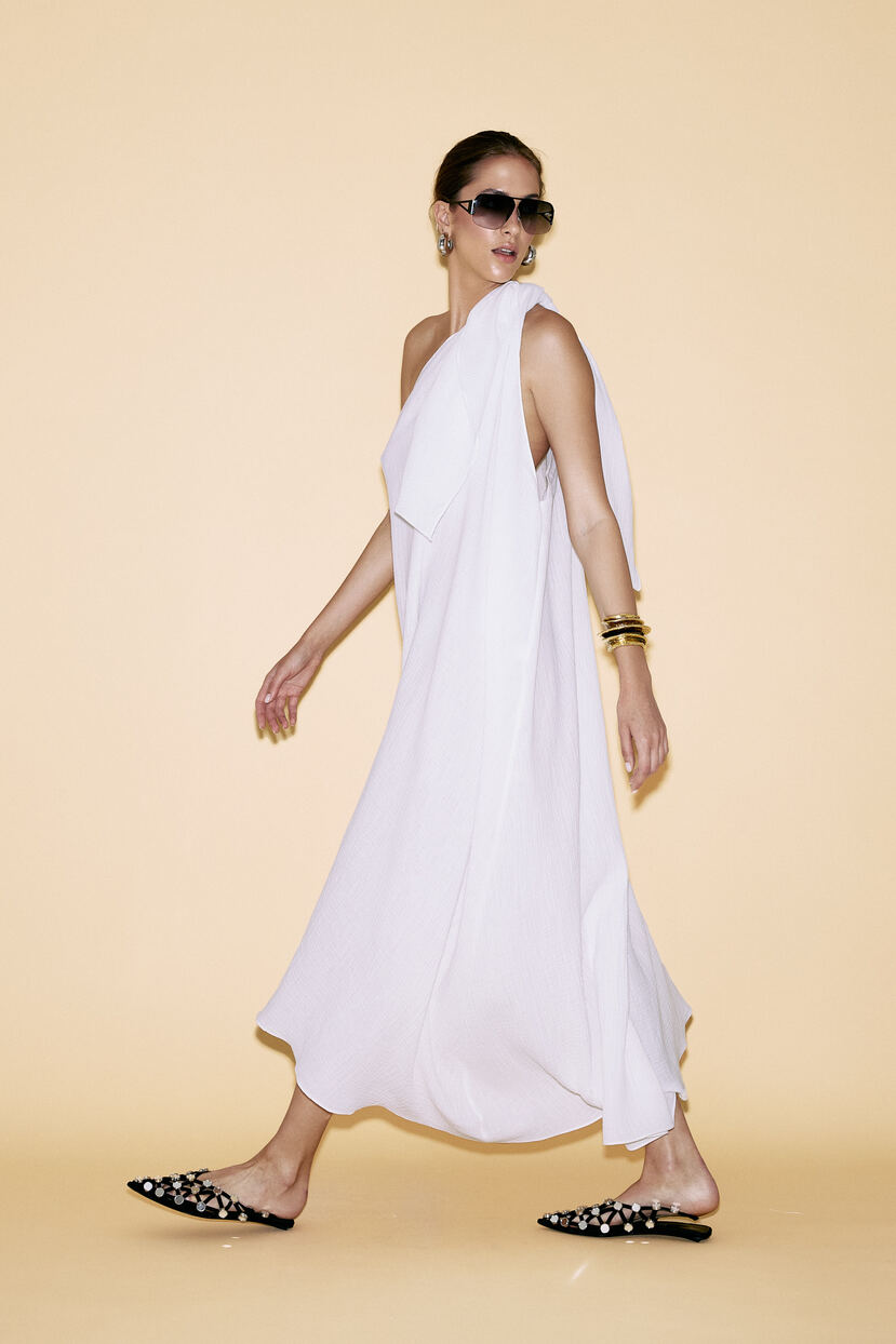 HOME - CLOTHING - Dresses - Midi-One Shoulder White Midi Dress