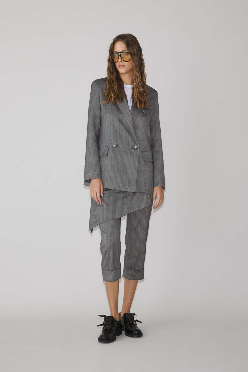 HOME - CLOTHING - Jackets - Blazers-Oversized Grey Striped Blazer