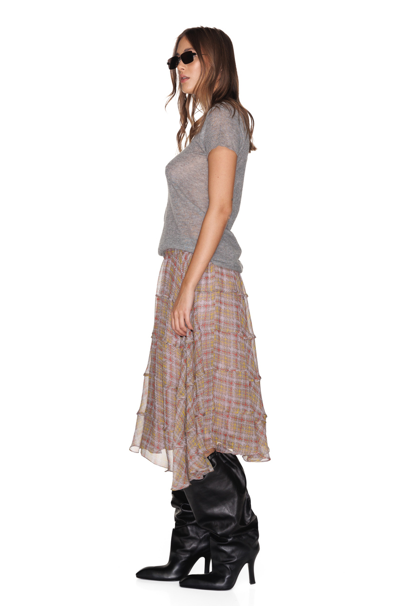 HOME - CLOTHING - Skirts - Midi-Printed Beige Silk Midi Skirt