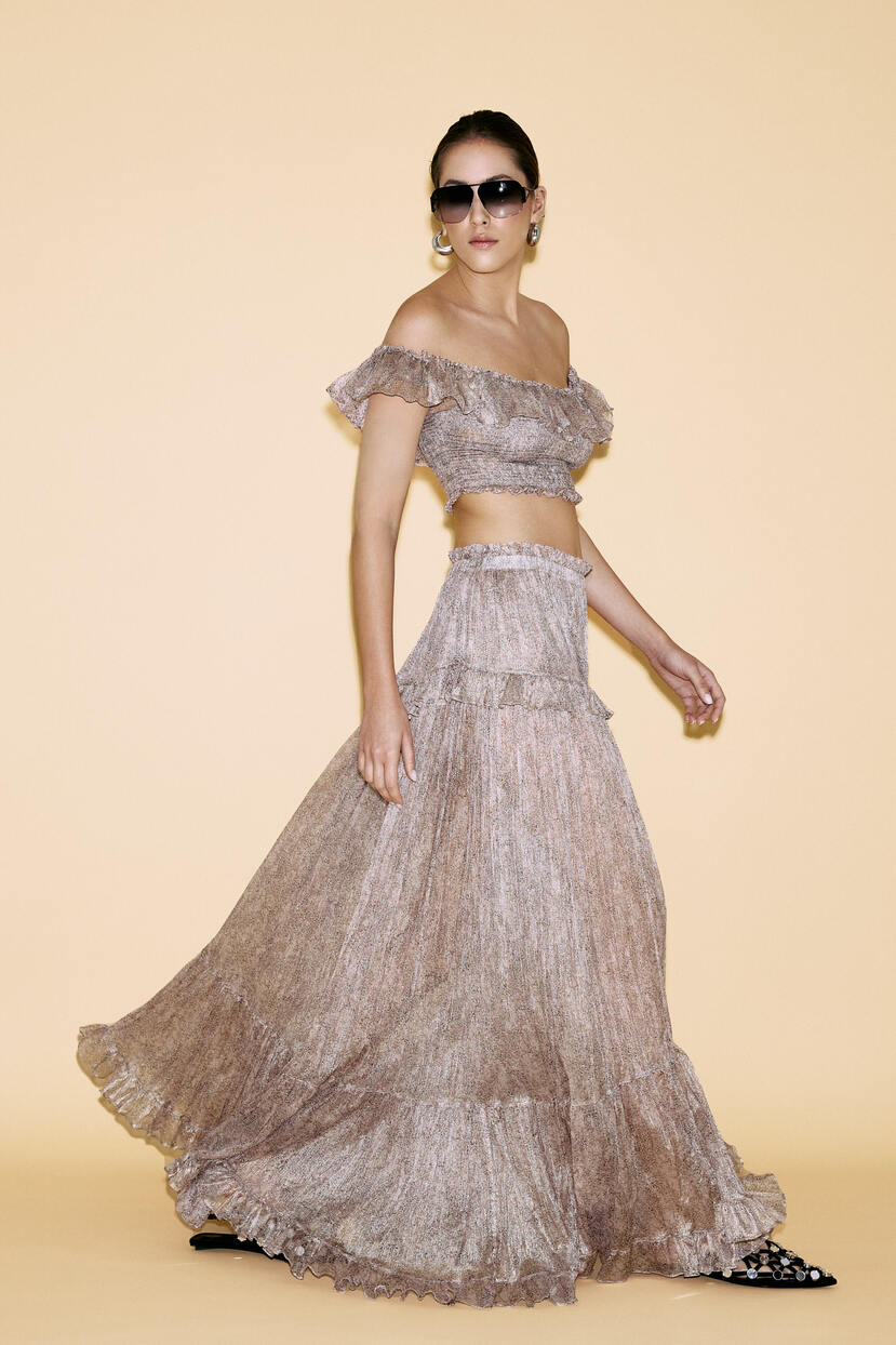 HOME - CLOTHING - Skirts - Maxi-Printed Floral Rose Silk Maxi Skirt - SS24