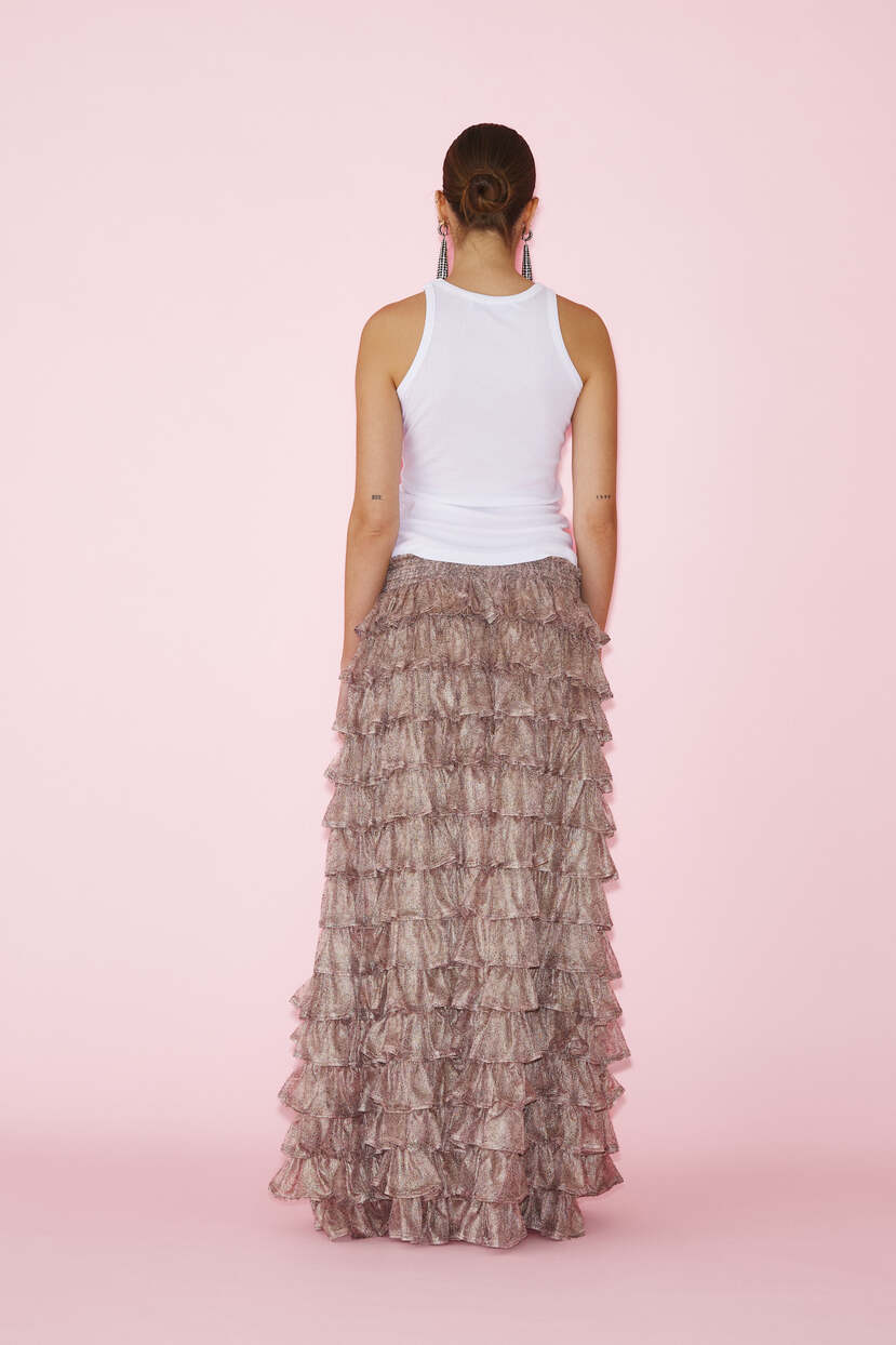 HOME - CLOTHING - Skirts - Maxi-Printed Floral Rose Silk Skirt With Ruffled