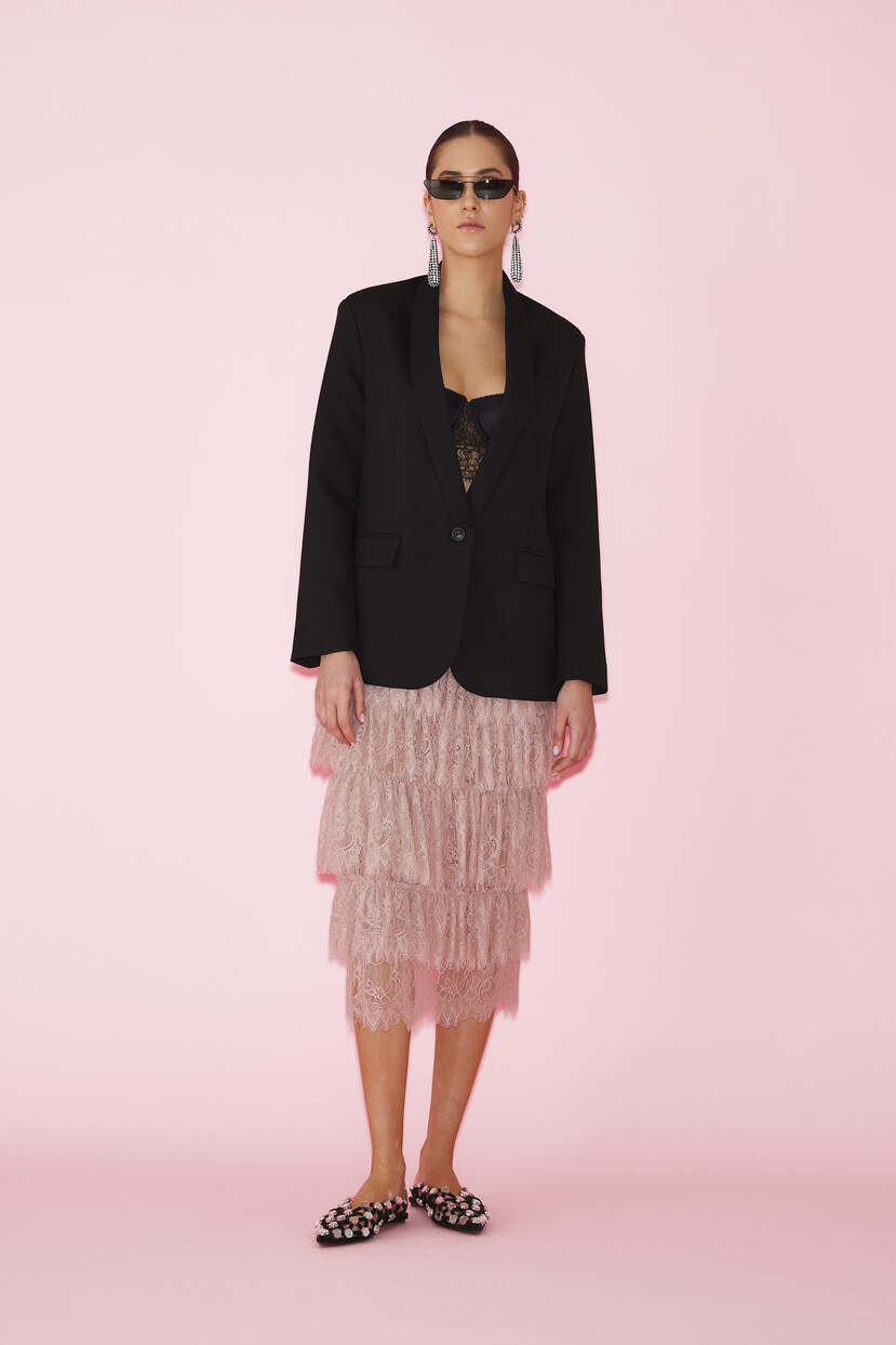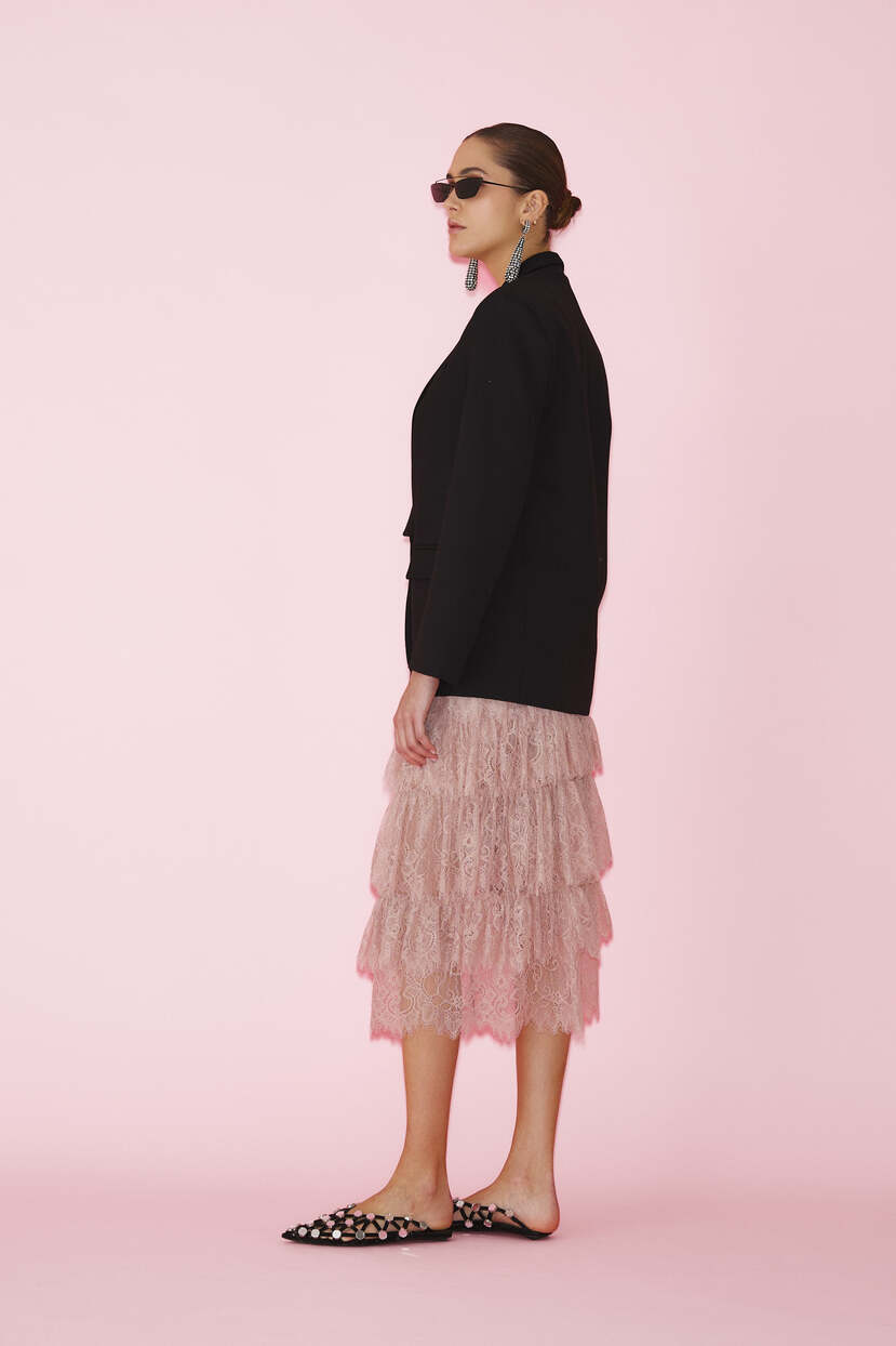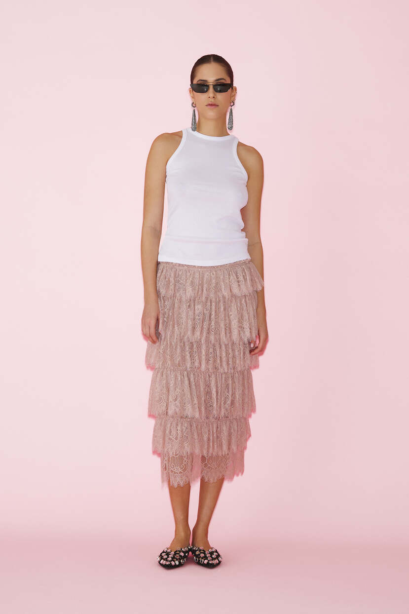 HOME - CLOTHING - Skirts - Midi-Rose Lace Midi Skirt With Ruffles