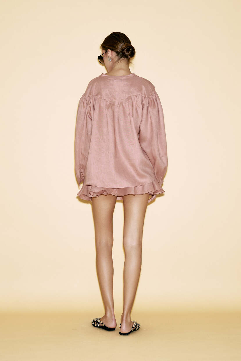 HOME - CLOTHING - Pants - Shorts-Rose Linen Ruffled Shorts
