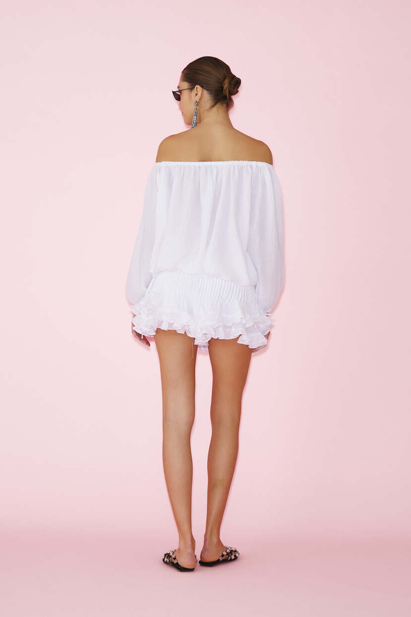 HOME - CLOTHING - Tops - Blouses-White Blouse With Bare Shoulders