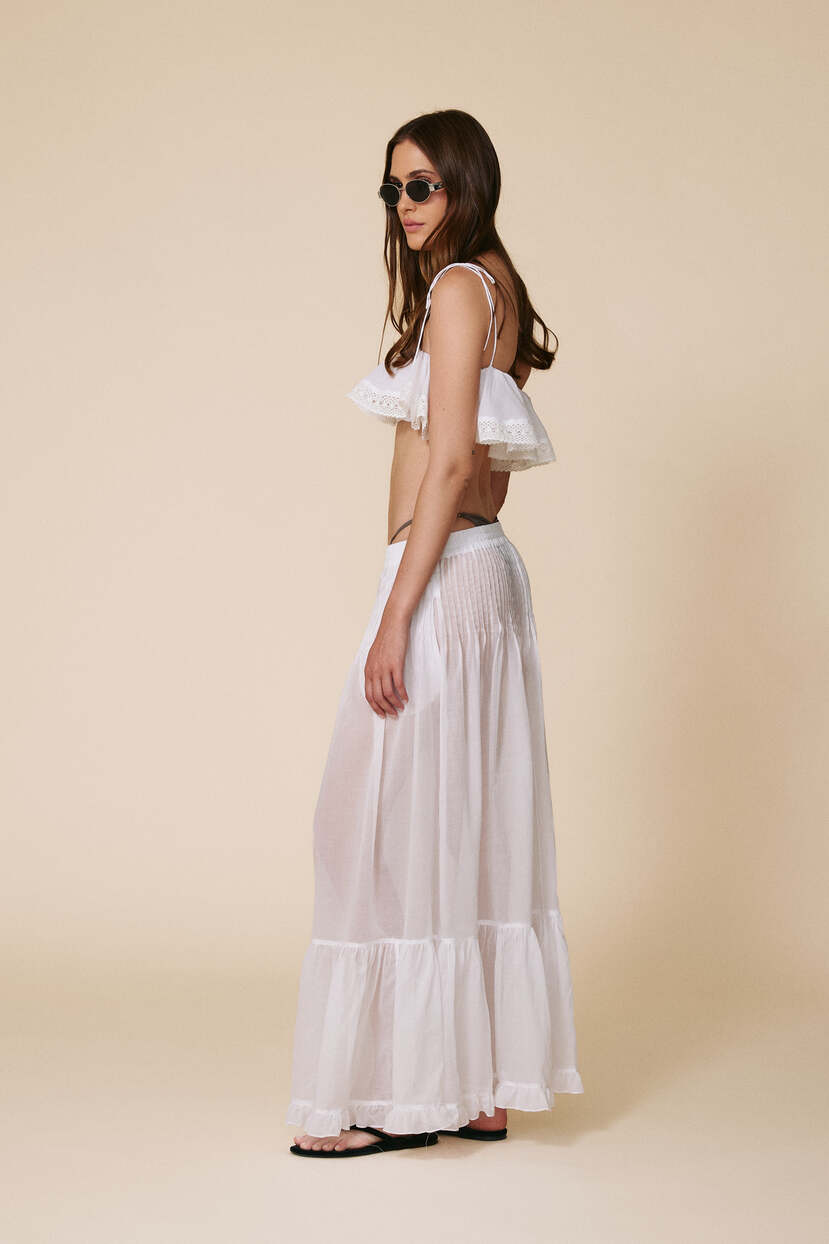 HOME - CLOTHING - Skirts - Maxi-White Cotton Pleated Maxi Skirt
