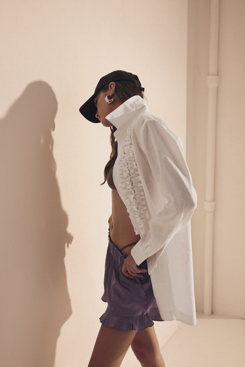 HOME - CLOTHING - Dresses - Mini-White Linen Dress With Detachable Sarong