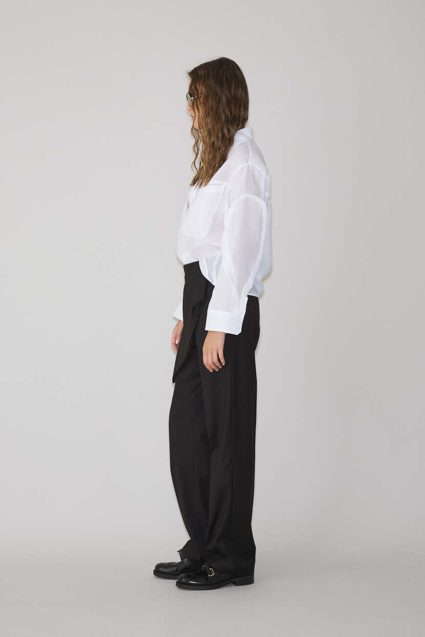 HOME - CLOTHING - Tops - Shirts-White Linen Shirt With Sleeves Details