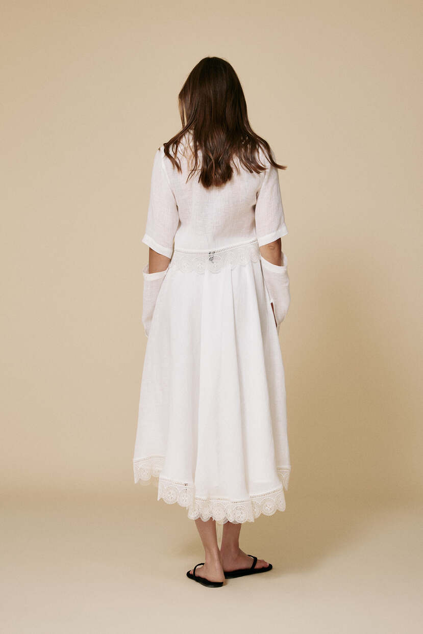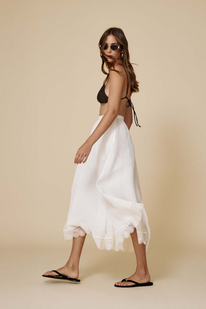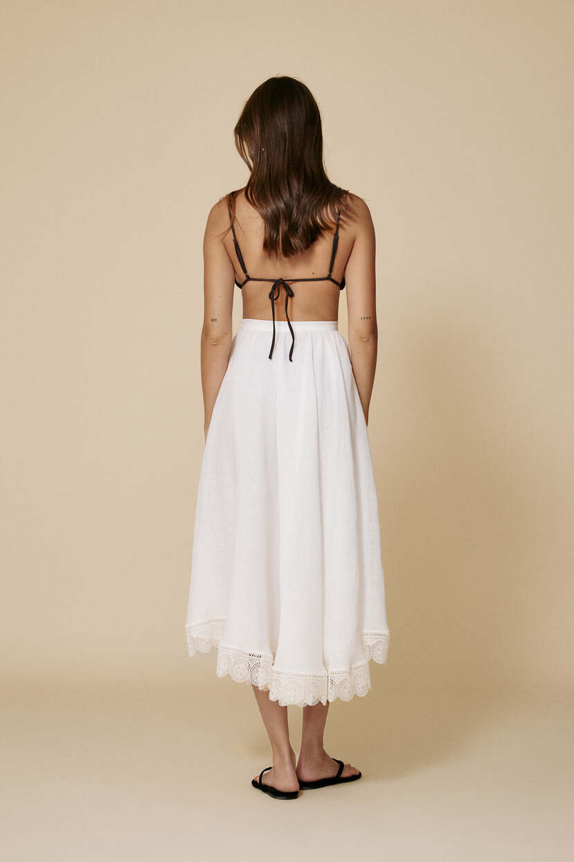 HOME - CLOTHING - Skirts - Midi-White Midi Skirt With Lace