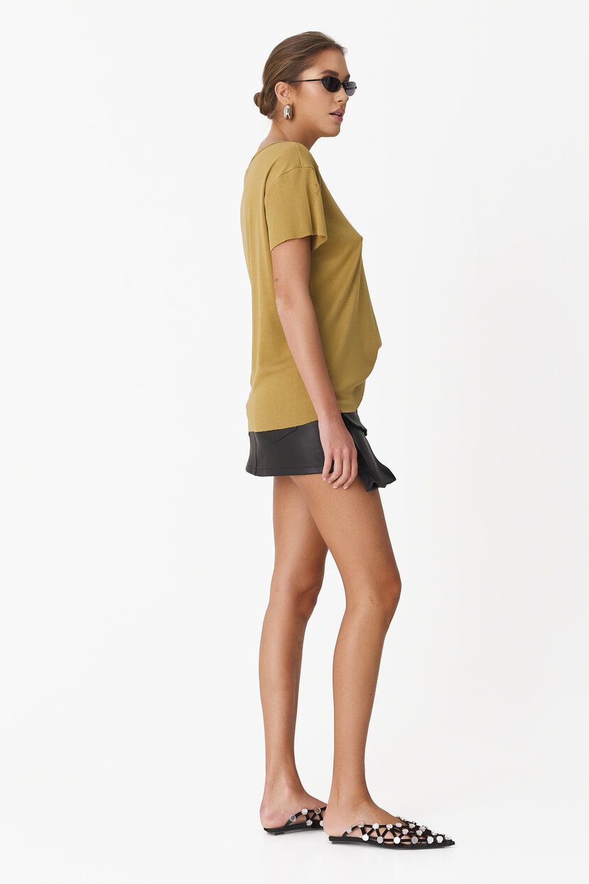 HOME - CLOTHING - Tops - Tshirts-Yellow Rib Hand-Distressed T-shirt